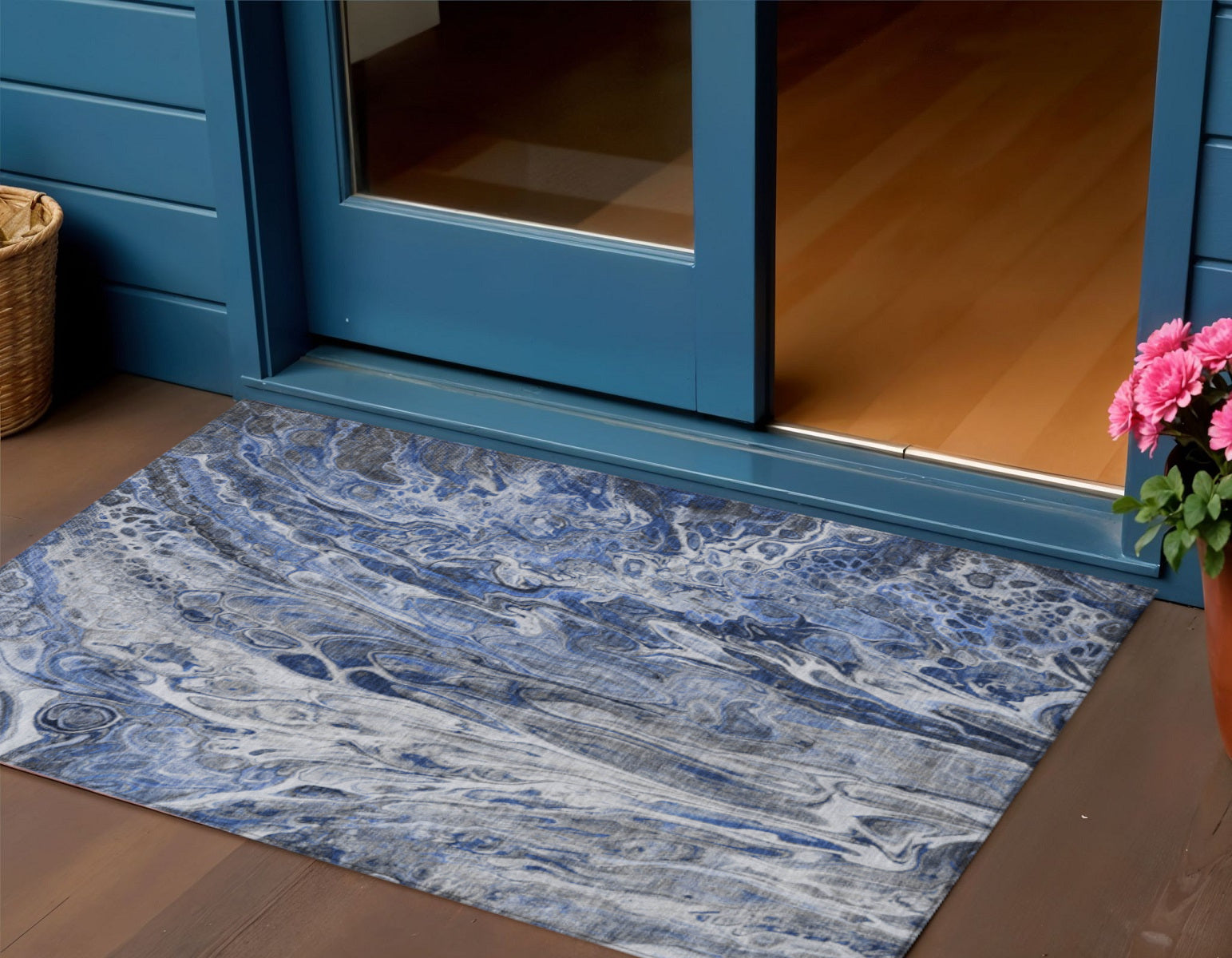 3' X 5' Denim Blue And Navy Blue Abstract Washable Indoor Outdoor Area Rug
