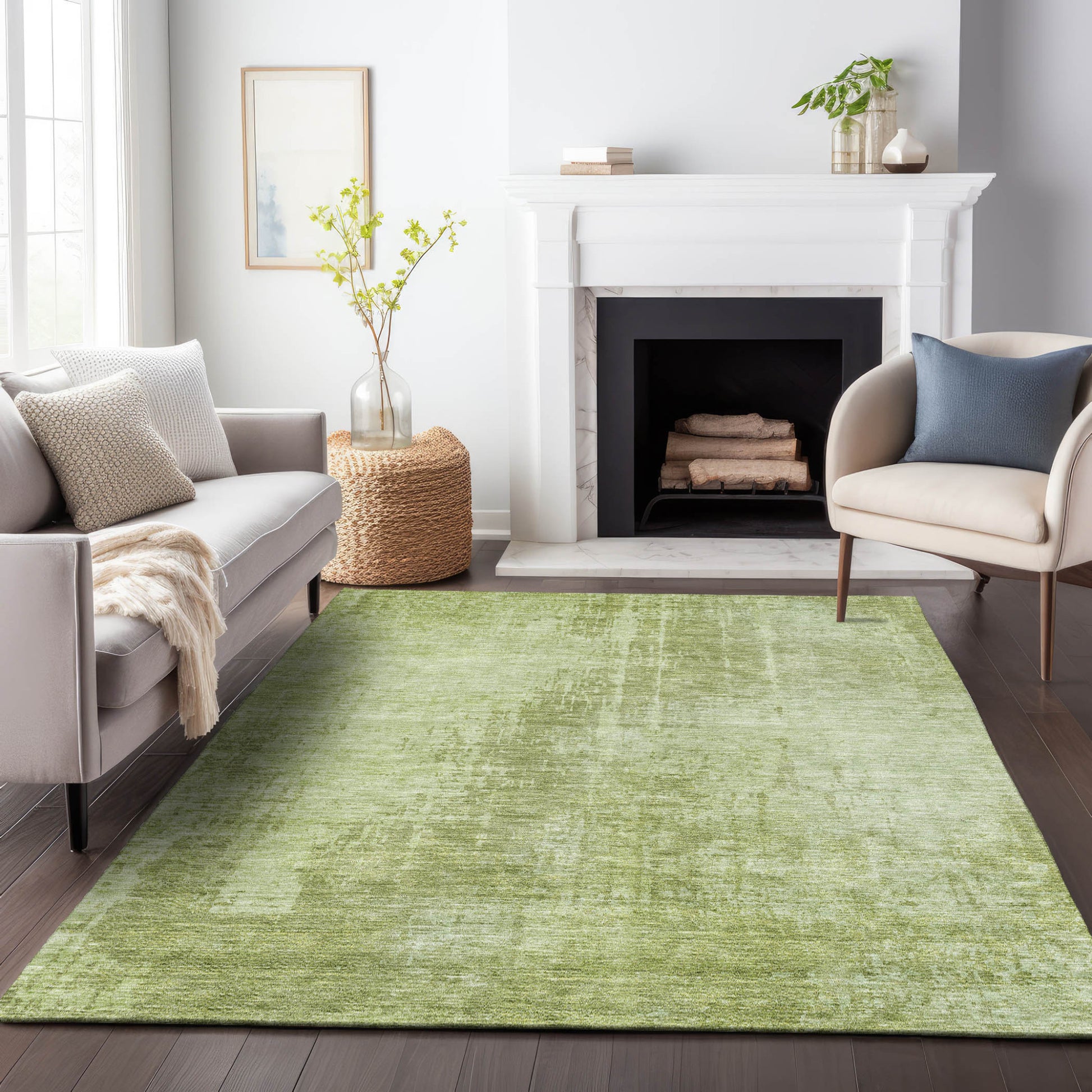 3' X 5' Sage And Green Abstract Washable Indoor Outdoor Area Rug
